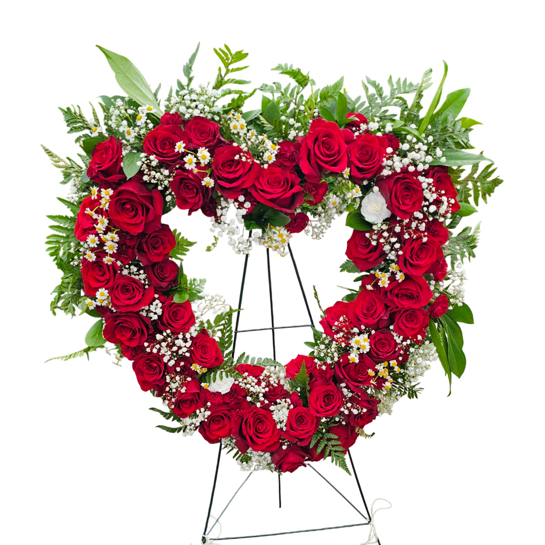 A classic and graceful tribute, standing wreaths are displayed on an easel beside the casket or service area. They symbolize eternal love and remembrance, offering comfort and beauty during times of farewell.